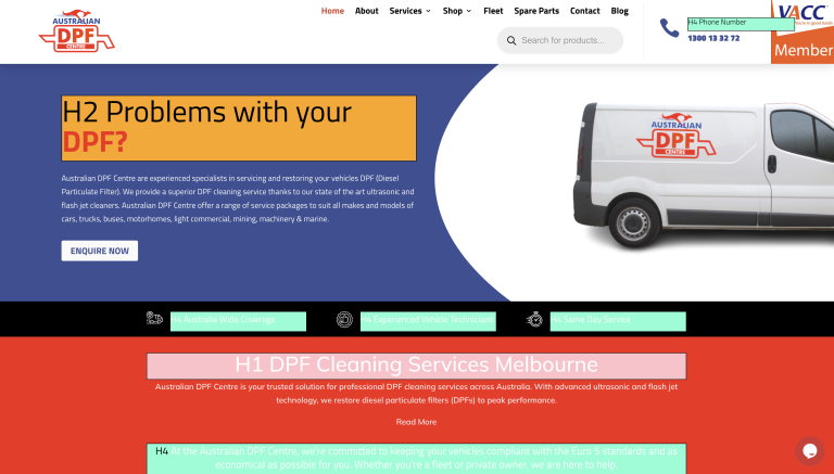 DPF Cleaning Service: This page addressed the broad needs of users looking for general DPF cleaning, providing comprehensive content that boosted trust and conversions by positioning Australian DPF as the expert in the field.