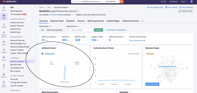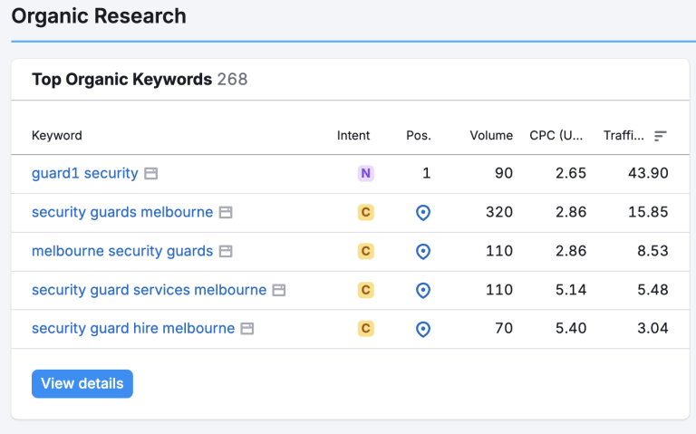Guard1 Security operates in one of Melbourne’s most competitive industries, providing services such as event security, retail loss prevention, construction site security, and concierge security. To drive growth, we needed to compete with well-established security companies dominating Google search results, making it essential to improve Guard1’s online visibility and presence in search rankings.
